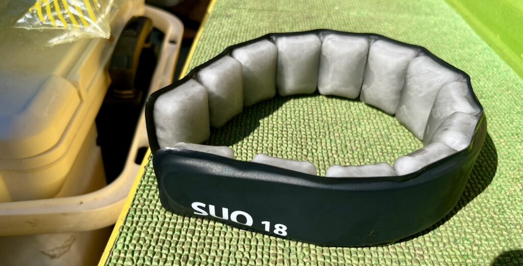 というわけで冷凍庫で凍らせてクーラーボックスで運んできたネッククーラーの登場です!