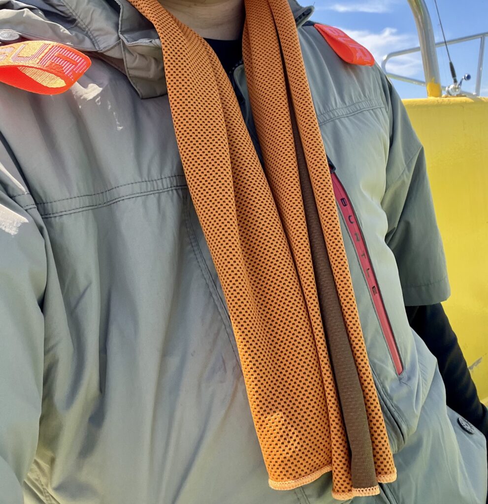 今回は、今年手に入れた酷暑対策グッズ「ネッククーラー」「空調服(ファン付きウエア)」「冷感タオル」を、実際の船の上で使ってみました。